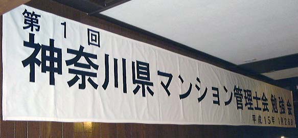 住宅新報Housing TIMESの2003/01/22付ニュースで、住まいとまちづくりコープが1/24(金)、1/25(土)の両日、板橋区双葉町の「あーちぷらざホール」で「住まい環境まちづくり仕事展」と題したイベントを開催することが紹介されています。25日には、明海大学助教授の齊藤広子氏による講演「国のマンション施策とその背景」と、平安女学院大学生活環境学部長の梶浦恒男氏による講演「21世紀のマンション居住―住み続けられるヒント」が行われるそうです(参加費1000円)。私は板橋区で生まれて育ったということもあり、ぜひとも参加したいところなのですが、あいにく予定がふさがっているため今回は見送ります。神奈川の勉強会もあと3日になり、とりあえず今日は横断幕を作成しました。時間がないので、設立総会で使用した横断幕の「設立総会」の部分を「勉強会」に直しただけのもの。所要時間約1時間。次は講義資料の作成。果たして間に合うのか・・・(^_^;)。